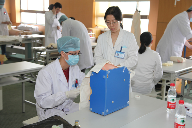 6月14日上午,所有抽取内科专业的员工集中到附属鼓楼医院1号楼22层的临床技能中心,进行四大穿刺(胸穿、腹穿、骨穿和腰穿)的考核。公司从两家附院共抽调了8名经验丰富的专家组成考核组,实行2位专家同时对1名员工的操作进行考核。员工具体所考穿刺内容由现场随机确定。