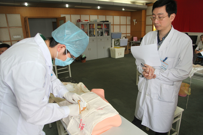 6月13日下午,公司组织了呼吸科、消化科、心内科、普外科、骨科及泌尿外科中临床教学经验丰富的12位专家组成考核组,在附属金陵医院对其中25位员工进行床边考核。每位员工所考科室由现场随机确定。考核采取笔试、口试和实际操作相结合的方式,实行2位专家同时对1名员工的临床思维和临床技能进行考核评分。考核的主要内容包括了对病人进行病史采集和体格检查,并完成首程。普外科、骨科及泌尿外科的考生还需考床边换药或拆线。